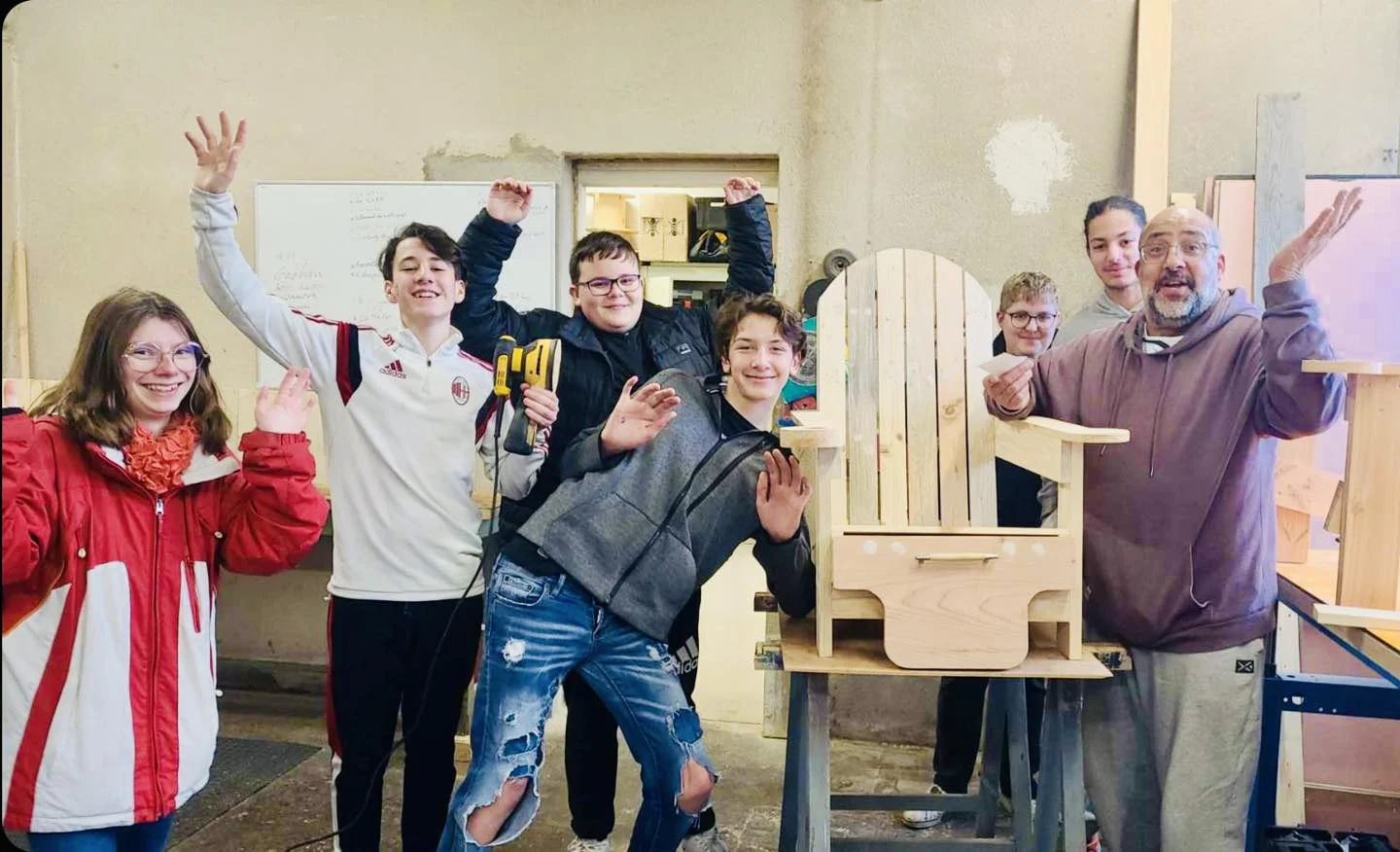 Fin de nos ateliers visant à créer le canapé en palette destiné à l'espace Ados.
