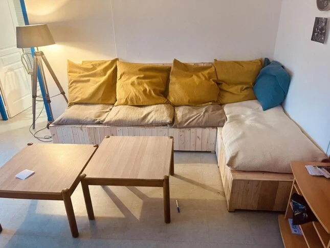 La construction du canapé progresse avec succès ! Nous sommes à mi-parcours ! Le résultat s’avère prometteur.