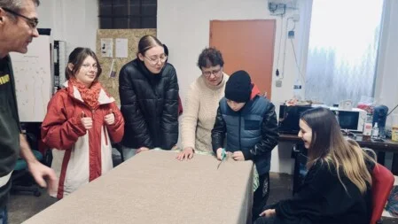 Au programme : initiation à la scie sauteuse, à la perceuse, et découpage du bois, ainsi qu'à la couture pour la réalisation des coussins avec les techniques de la machine à coudre.