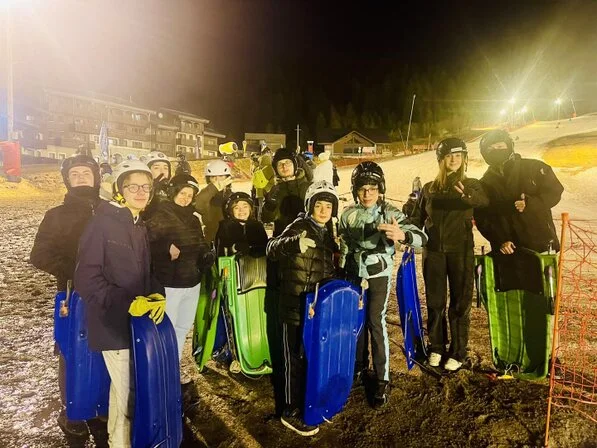 Les jeunes ont également profité d'une descente en luge jeudi soir sous les étoiles, glissant sur les pistes enneigées de ski du domaine skiable de la Bresse : Skis hop La Bresse-Hohneck Labellemontagne.
