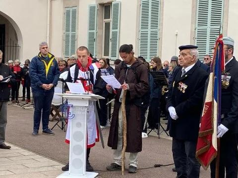 Les jeunes ayant participé au projet "sur les routes de Compostelle" organisé par le centre social de Thaon-les-Vosges cet été, ont été sollicités par les élus pour participer aux commémorations du 11 novembre. Ils ont travaillé sur le thème de l’Espoir et du Respect, pour présenter deux textes qu'ils ont lus devant l'assemblée présente. Plus que jamais, en nos temps incertains, il était nécessaire d'honorer la mémoire de ceux qui se sont battus pour la France et mettre en avant la jeunesse ! Ils avaient le trac mais ils ont donné le meilleur d’eux même et ont pu partager leur vision de l’Espoir et du Respect.