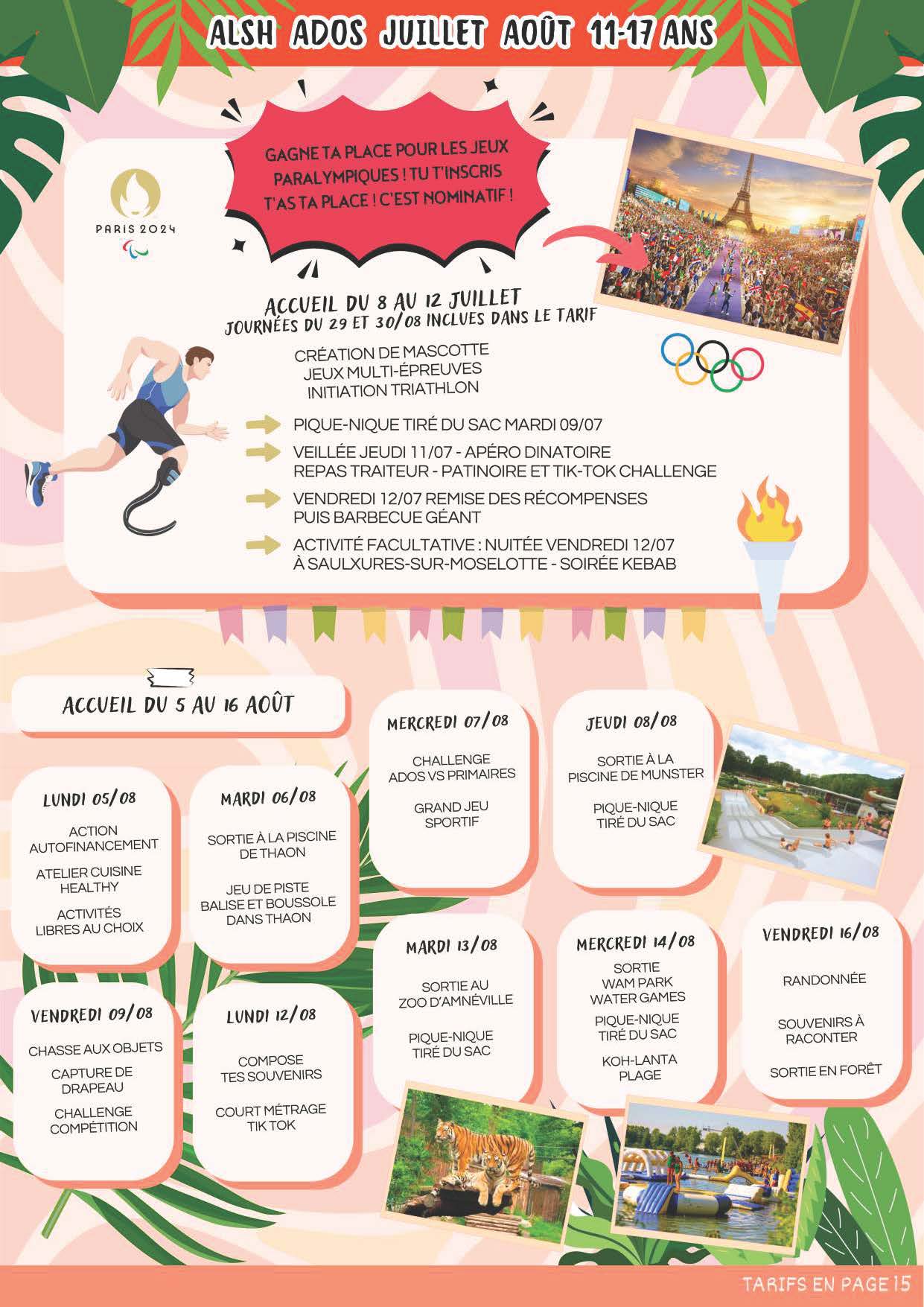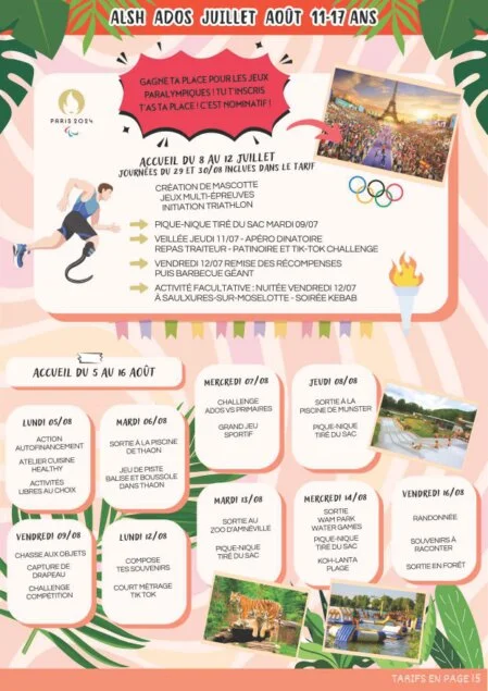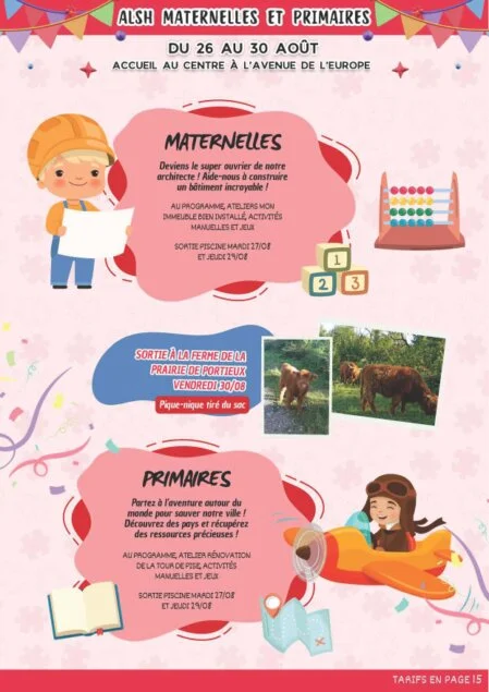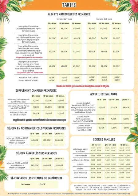 Retrouvez ici, toutes les informations et tarifs sur les activités, accueils de loisirs jeunesse, ados, mais aussi les colos, sorties et actions du pôle famille que nous vous proposerons tout au long des mois de juillet et août !
