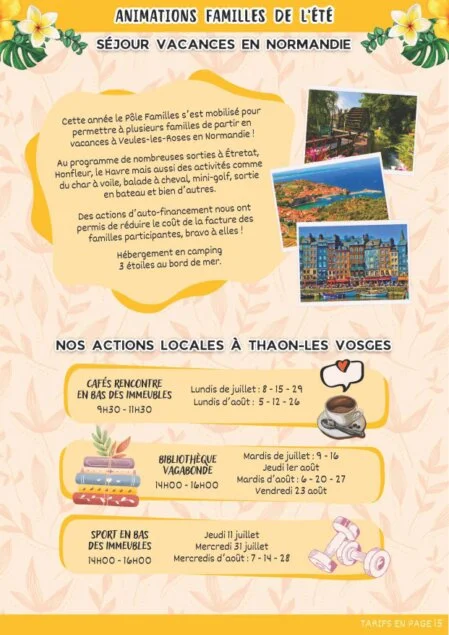 Nous sommes particulièrement fiers de vous présenter notre programmation estivale comportant toutes les activités des différents secteurs du Centre Social.